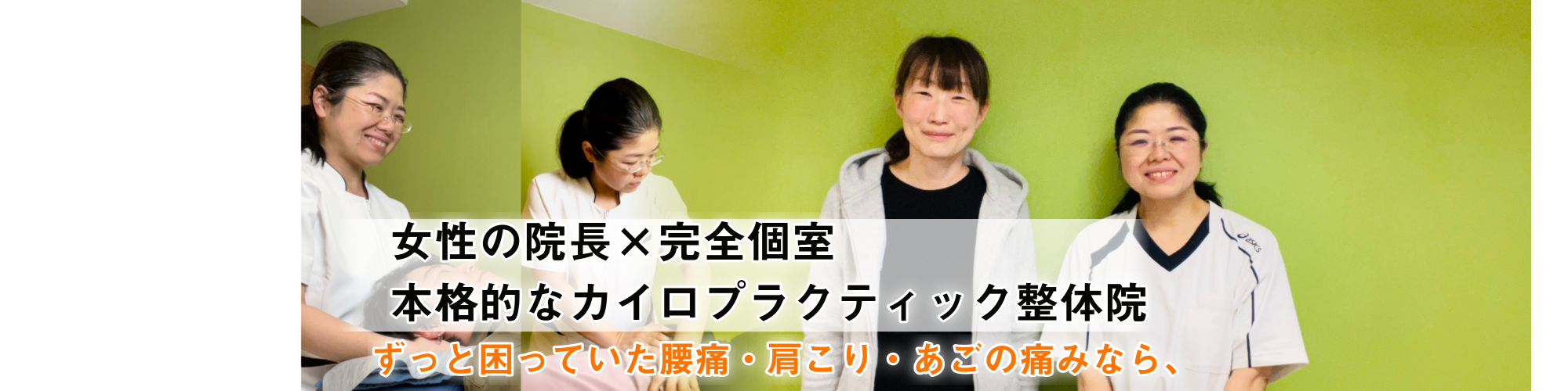 安心できるからが、最大の理由です。整体や、カイロの施術者は、まだまだ、男性が圧倒的に多いですが、 柏の町で、女性の顎関節の痛みや、腰痛、肩こりなどで、お困りの人の役にたちたくて、柏の町に柏カイロプラクティック整体院をオープンしました。