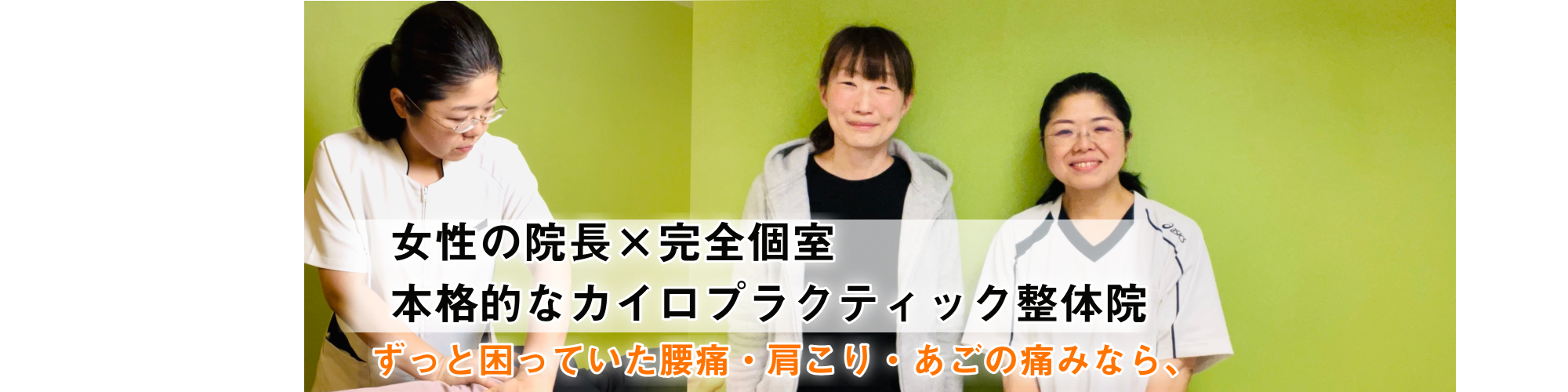 安心できるからが、最大の理由です。整体や、カイロの施術者は、まだまだ、男性が圧倒的に多いですが、 柏の町で、女性の顎関節の痛みや、腰痛、肩こりなどで、お困りの人の役にたちたくて、柏の町に柏カイロプラクティック整体院をオープンしました。